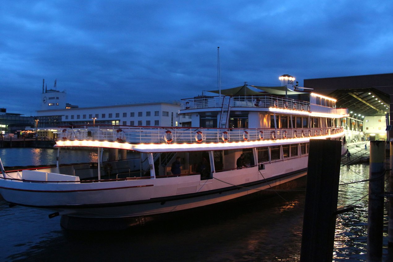 Zweieinhalb Monate war das Motorschiff „Schwaben“ zur Landrevision in der Werft in Friedrichshafen: Am frühen Montagmorgen, 15. Dezember, wurde das Schiff noch in der Dunkelheit, aber in voller Festbeleuchtung und begleitet von Böllerschüssen, eingewassert. „Es ist immer ein ganz besonderer Moment, wenn das Schiff langsam in den Bodensee gleitet“, sagt Christoph Witte, Leiter Schiffs- und Hafentechnik bei den BSB. „Schließlich ist ein Schiff in der Regel nur alle fünf Jahre an Land und damit komplett zu bestaunen.“