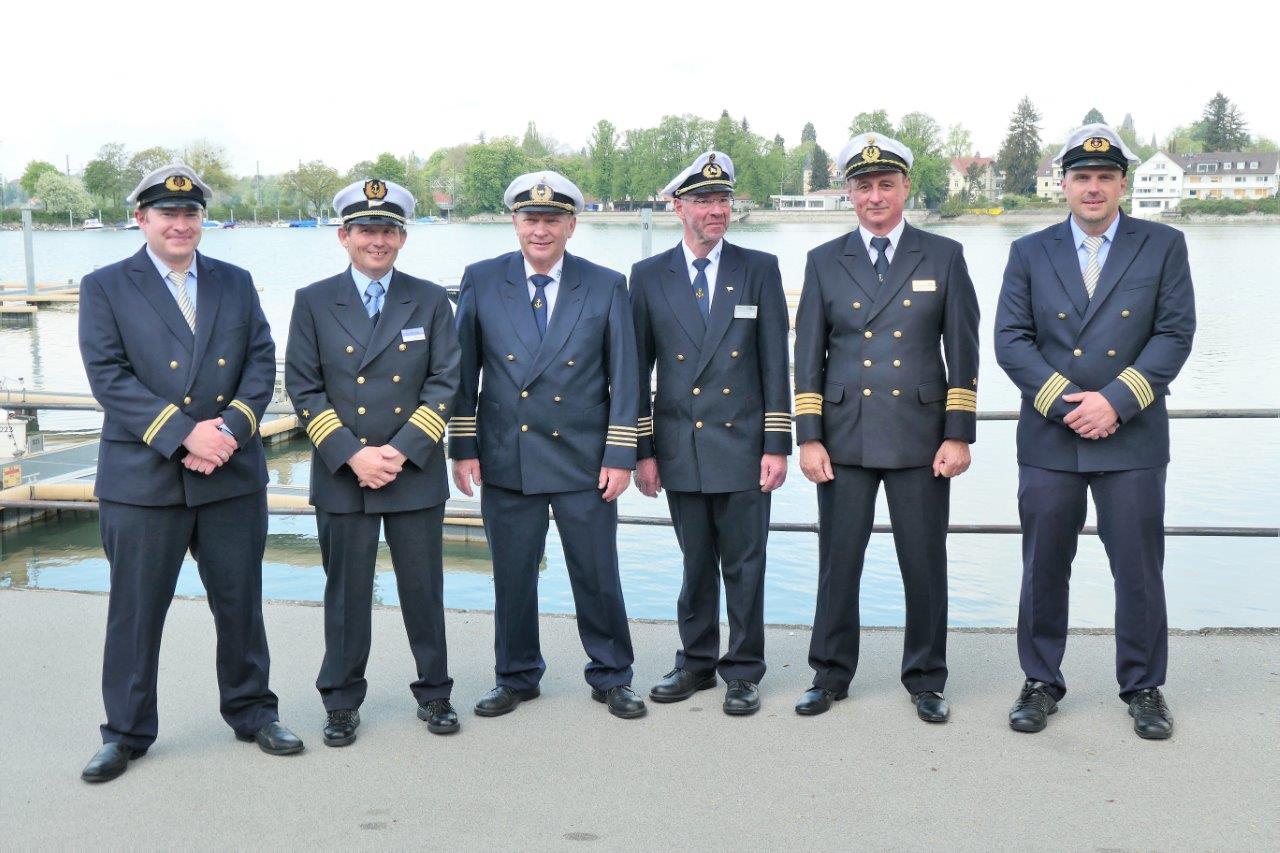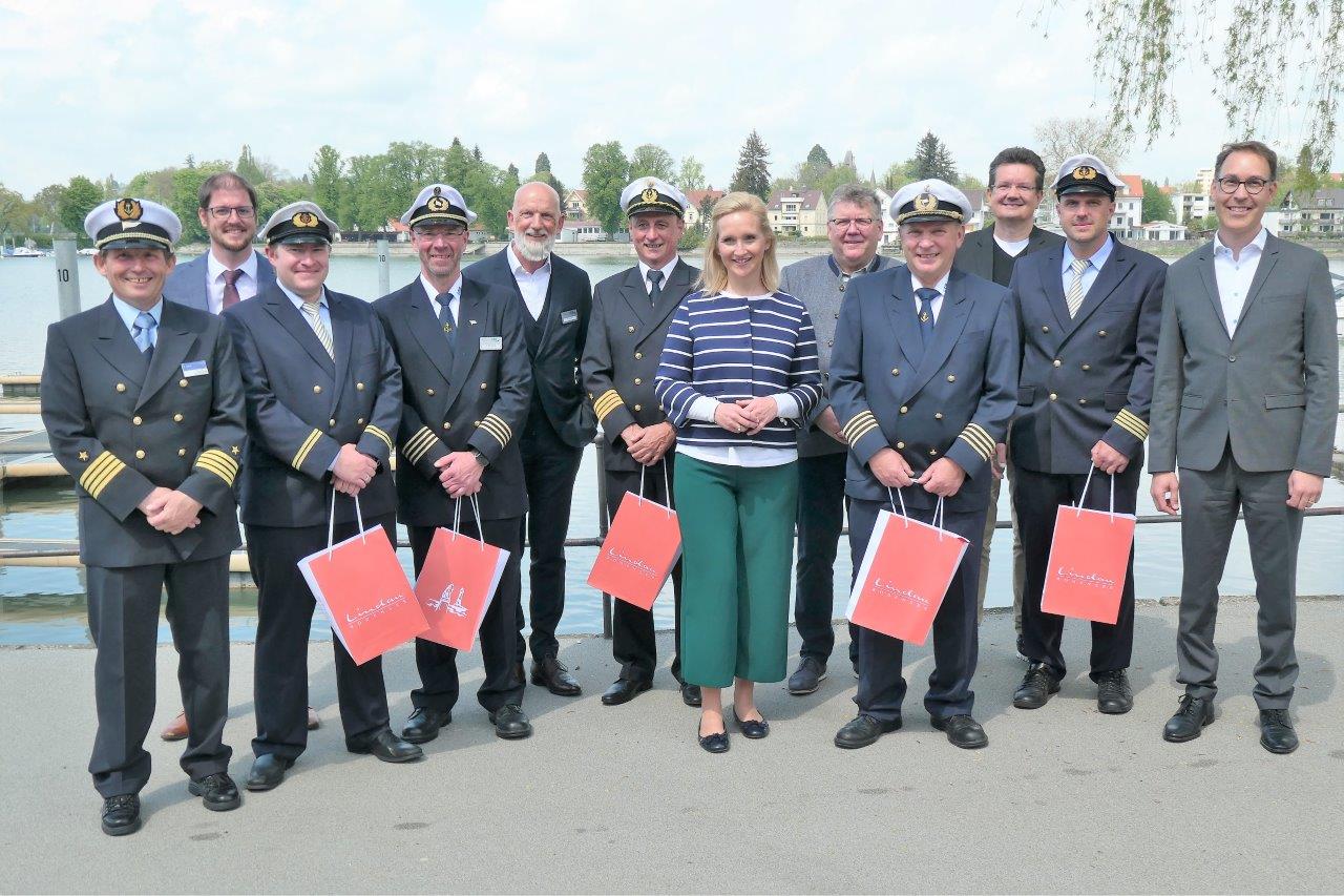 Im Bild die Kapitäne der "Sternfahrt-Schiffe" sowie Gastgeberin Lindaus OB Dr. Claudia Alfons (mitte),